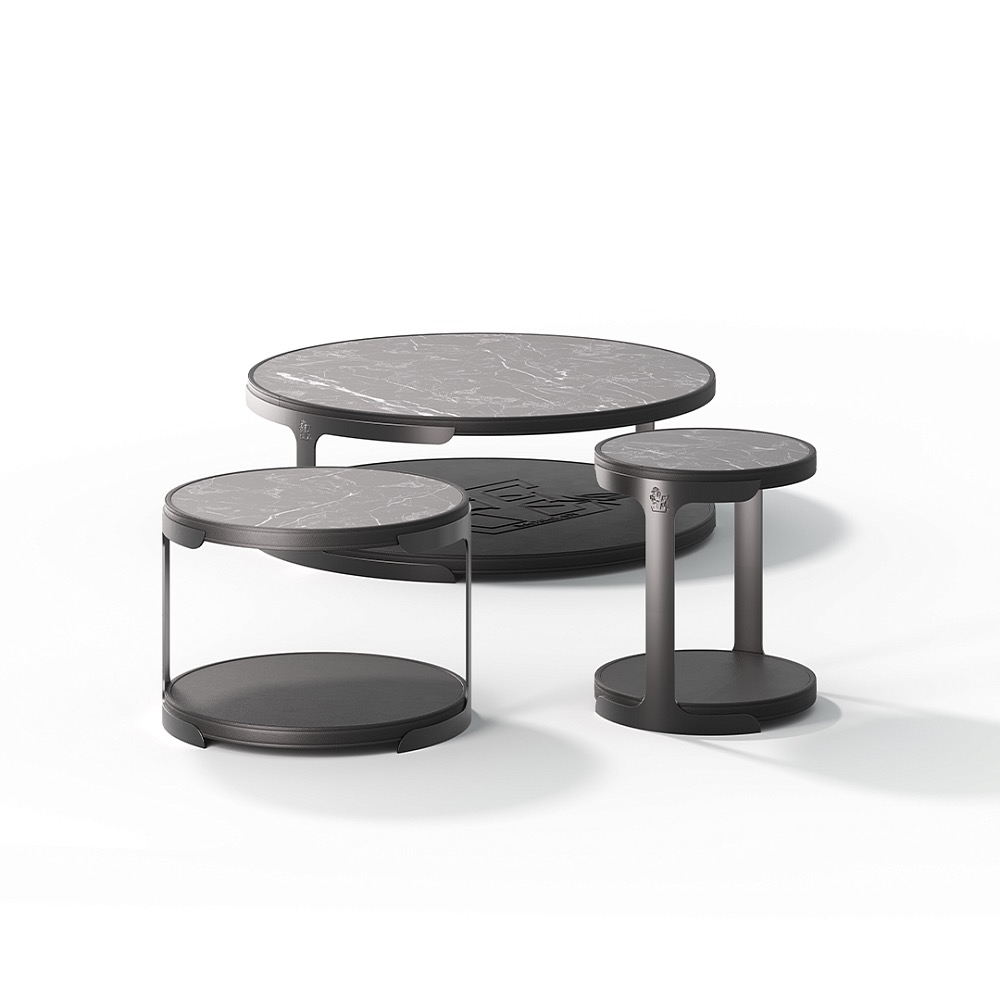 Круглый журнальный стол МОРГАН | MORGAN с двумя столешницами — это воплощение современного дизайна и функциональности. Каркас из нержавеющей стали или матового черного металла декорирован фирменным логотипом МОРГАН | MORGAN из олимпийской бронзы. Верхняя столешница доступна в различных вариантах: натуральный камень,  кварцевый агломерат, черное стекло или дерево. Нижняя столешница может быть выполнена из тех же материалов, либо из ткани с эксклюзивным тиснением или вышивкой.