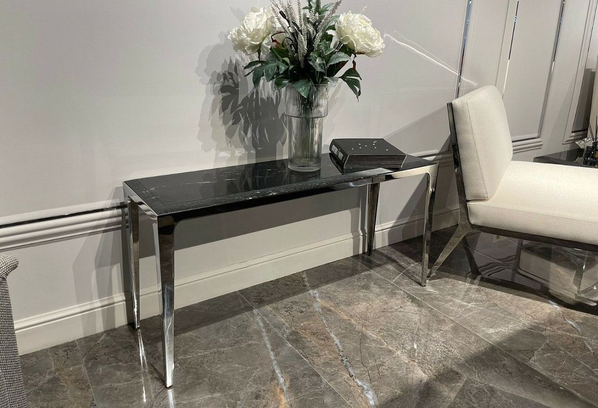 Консоль ГАММА | GAMMA с тонкими металлическими ножками на выбор: золото или серебро, и столешницей из натурального камня или кварцевого агломерата придаст интерьеру завершенность.
