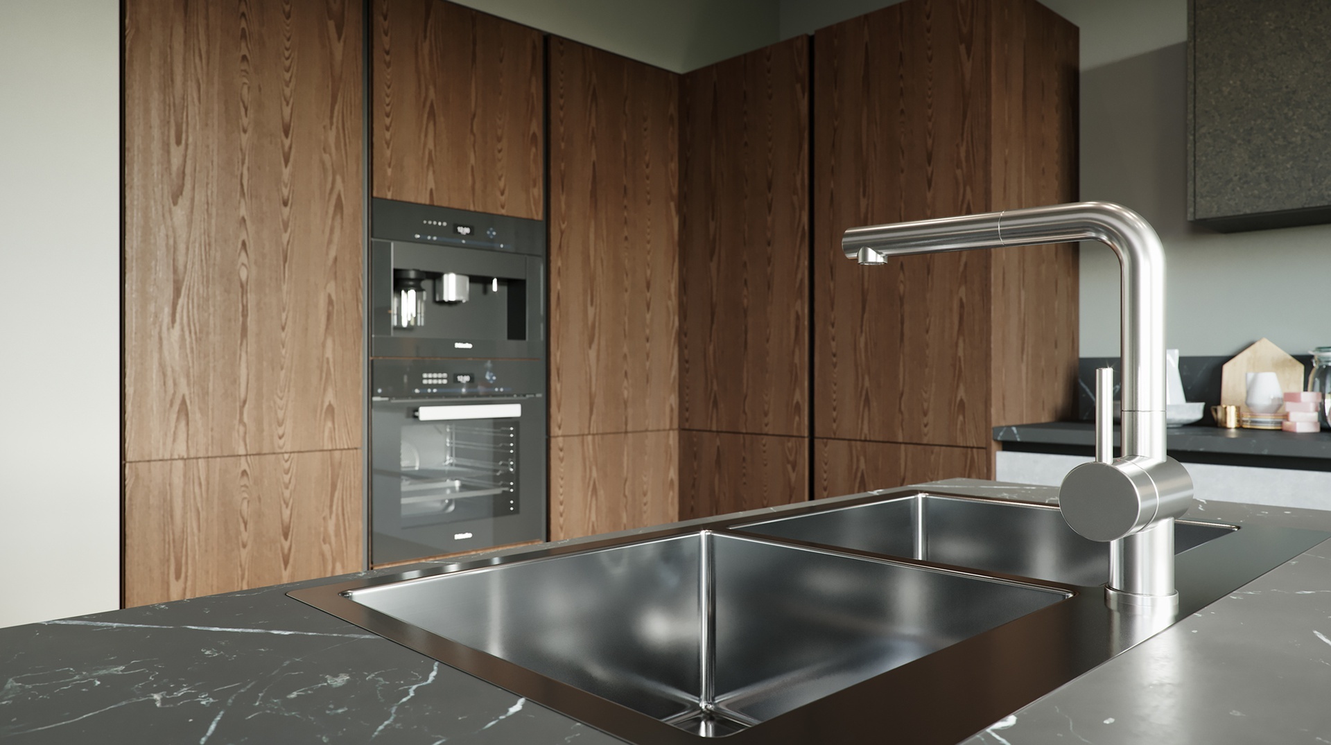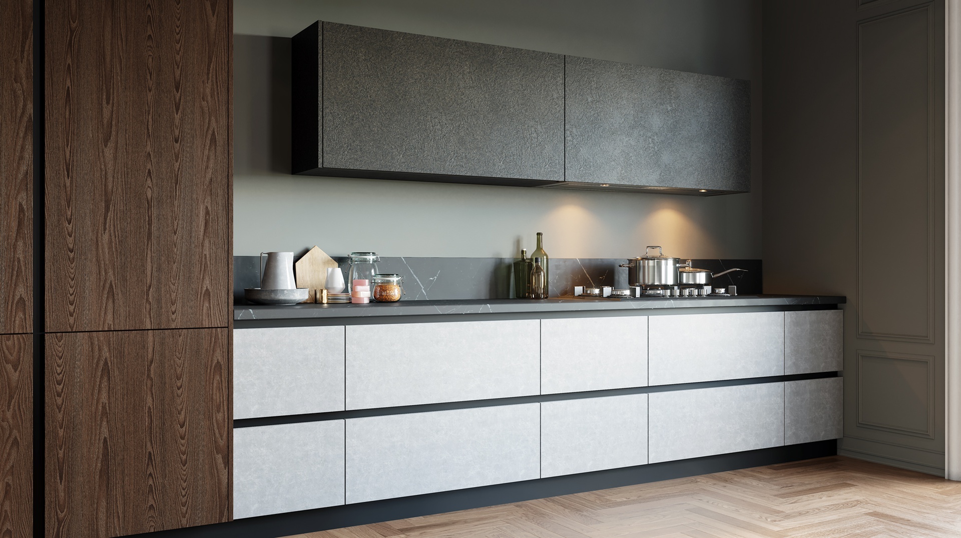 Модель «НИЦЦА» выполнена в ярком ультрасовременном дизайне. Её отличительной чертой является чёткая геометрическая точность всех линий. Фасады кухонного гарнитура могут быть облицованы акриловым, глянцевым или матовым пластиком широкой палитры оттенков: от строгих монохромных до фантазийных, декорированных различными орнаментами или стилизованных под древесную поверхность.