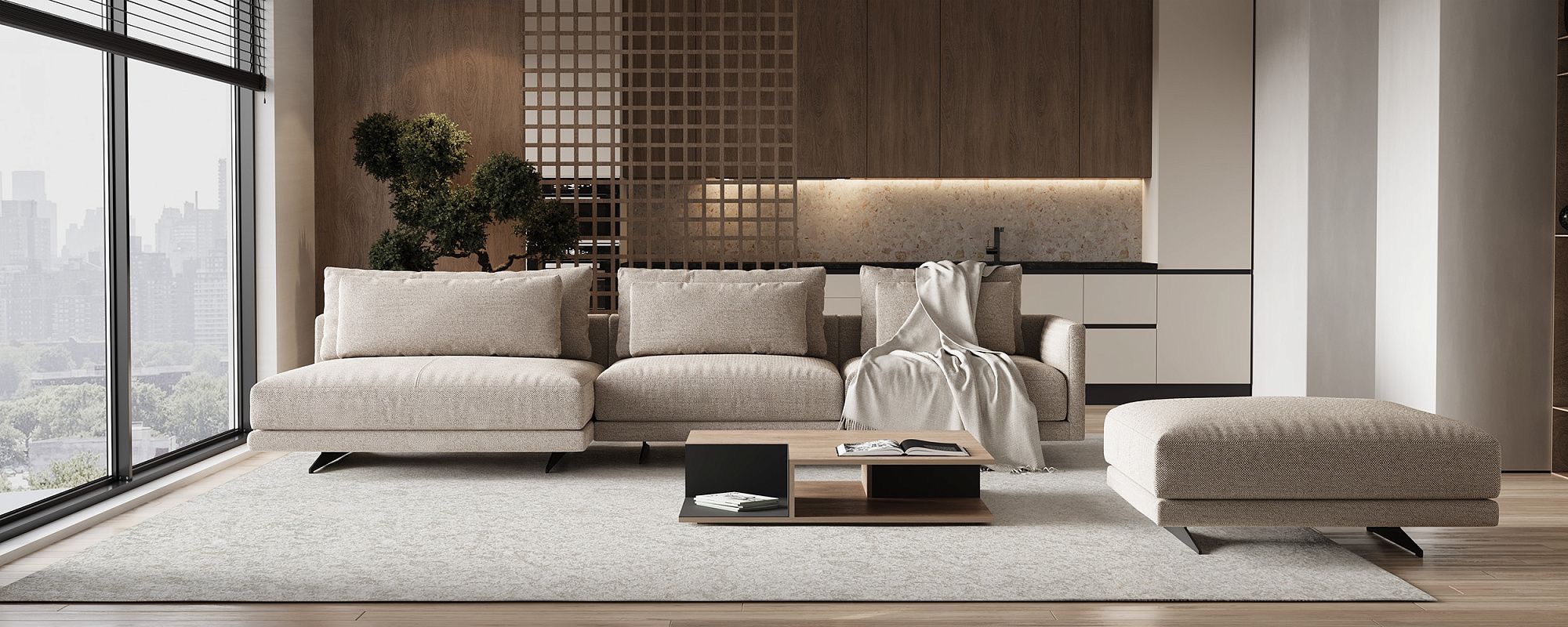 Лёгкость и воздушность дивана БРАЙН | BRIAN достигаются за счёт тонких линий каркаса, переходящих в подлокотники и потайных опор, которые придают ему эффект парения. Мягкие и утопающие подушки сидения подарят невероятный уют своему обладателю, а идеальная высота спинки и подлокотников поможет с комфортом расположиться на нем. Трендовым элементом декора является приставная декоративная полка из шпона натурального дуба. Данный элемент отражает эстетику хранения и может использоваться как отдельно стоящий предмет интерьера.