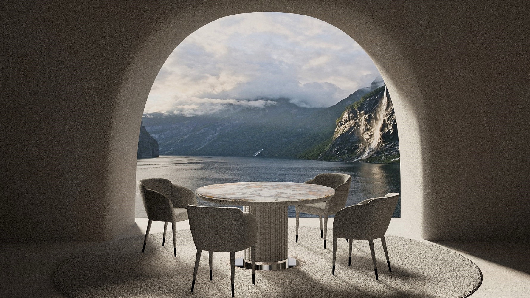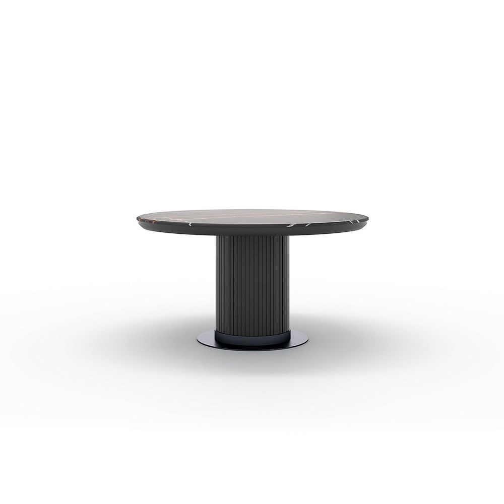 Столешница доступна в двух вариантах: натуральный камень с неповторимым рисунком или кварцевый агломерат, сочетающий красоту и износостойкость. Основание украшено металлической накладкой на выбор –  золото, серебро или  черный матовый.