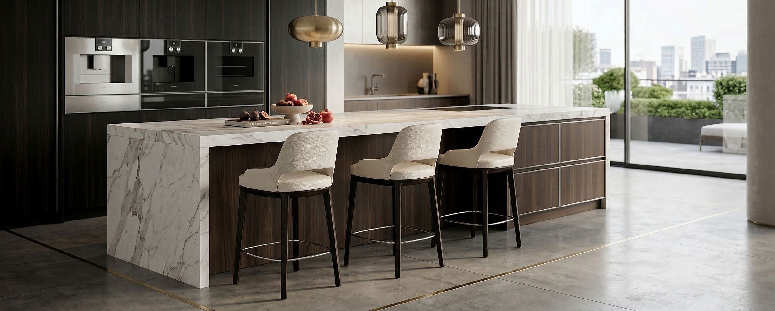 Модель МОРГАН | MORGAN создана для тех, кто не приемлет компромиссов между безупречной эстетикой и удобством. Этот полубарный стул станет смысловым центром вашего кухонного острова или домашнего бара, привнося в интерьер атмосферу сдержанной, интеллектуальной роскоши.