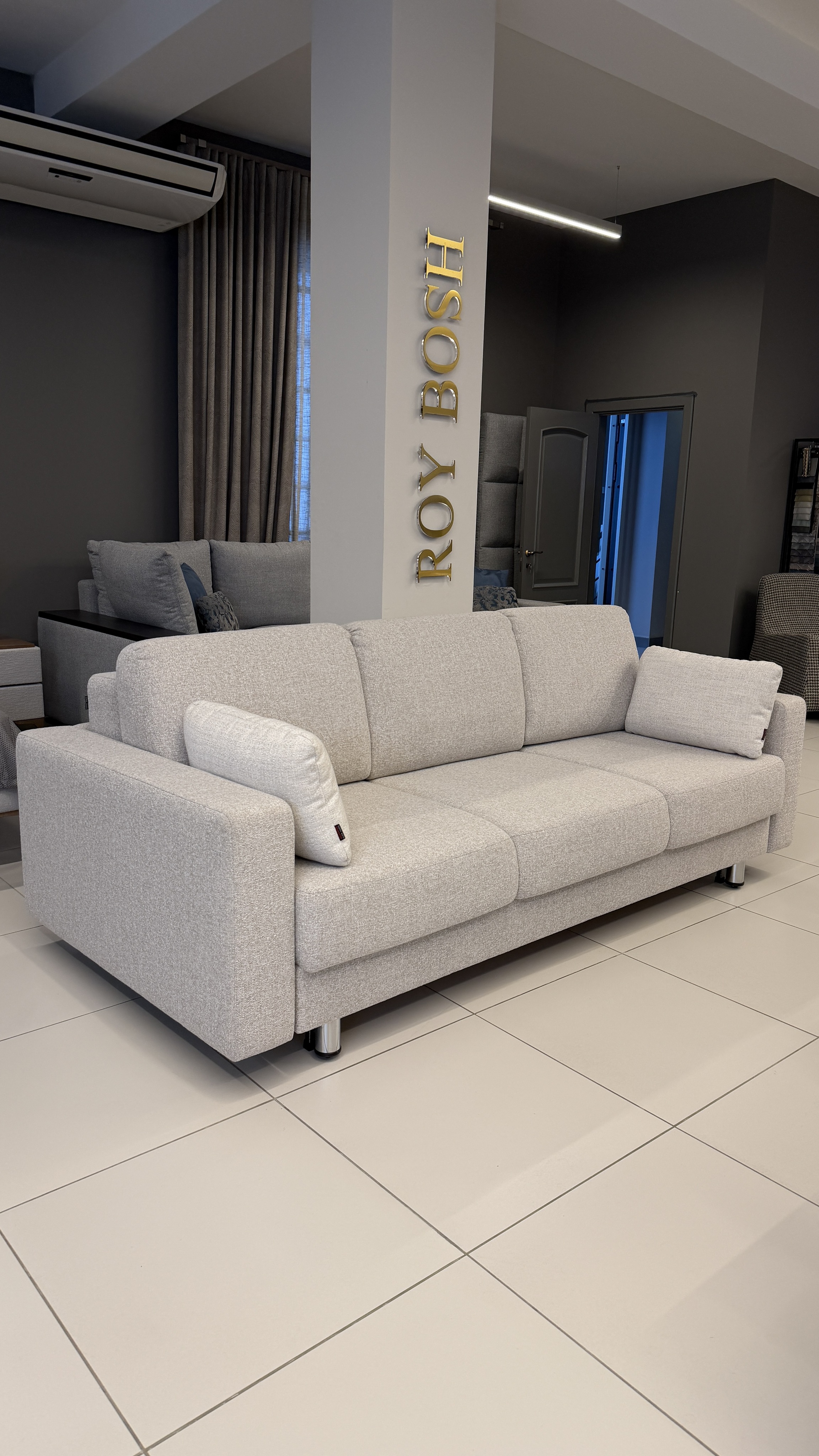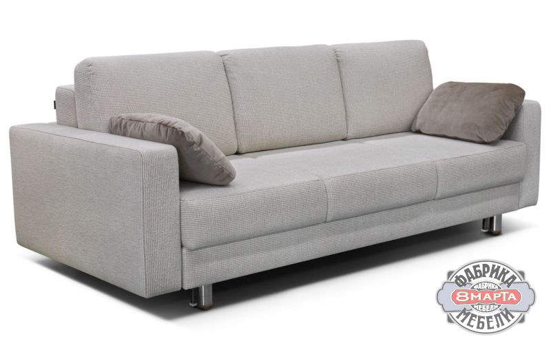 Прямой диван «Голливуд» – образец современного стиля и сдержанной элегантности. Несмотря на строгие линии подушки сиденья и спинки выглядят объемно и уютно. Высокие хромированные ножки дают просвет между полом и мебелью, что создает визуальное ощущение легкости.