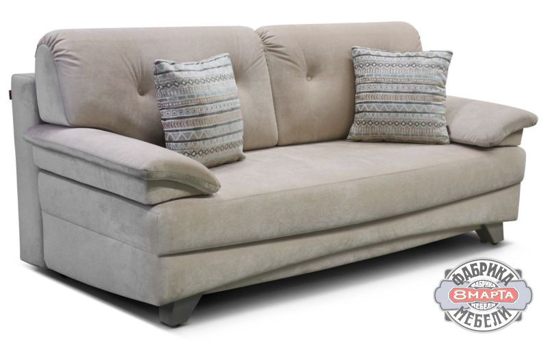 Диван «Мистраль» от «8 Марта» – это простые формы в сочетании с элегантным дизайном. Подушки спинки с глубокими утяжками смягчают строгость идеально ровного настила сиденья. Особенность модели – накладные подлокотники, благодаря которым мебель занимает меньше пространства и легко впишется в нишу. Его габариты в длину всего 200 см.