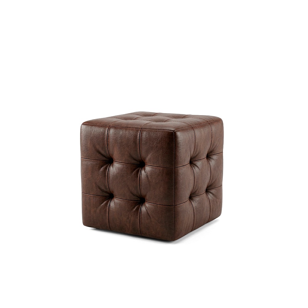 Пуф РОЯЛ | ROYAL в форме куба с глубокой утяжкой и благородной коричневой кожаной обивкой добавит интерьеру утончённости и статуса. Компактный, прочный и лёгкий в перемещении, он идеально подойдёт как подставка для ног или дополнительное сиденье в гостиной, кабинете или прихожей.