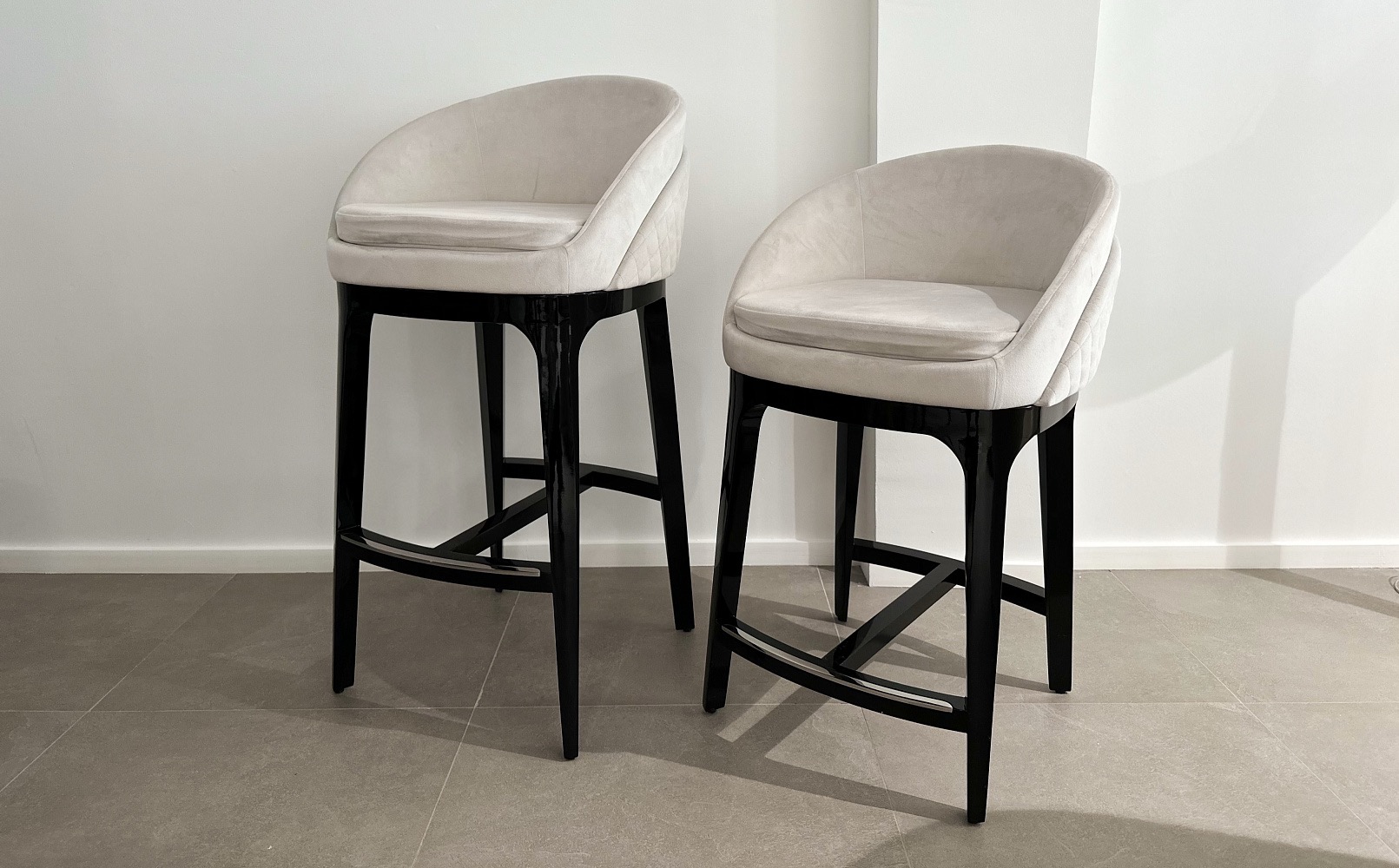 Стильный дизайн барного стула МИКИ | MIKY - это яркий акцент в вашем интерьере. Лаконичная округлая форма спинки в тандеме с объемной стежкой в виде ромбов и деревянным основанием делают стул уникальным. Небольшой угол наклона спинки плавно повторяет форму тела при посадке. Для особой мягкости стул оснащен дополнительной съемной подушкой сиденья.