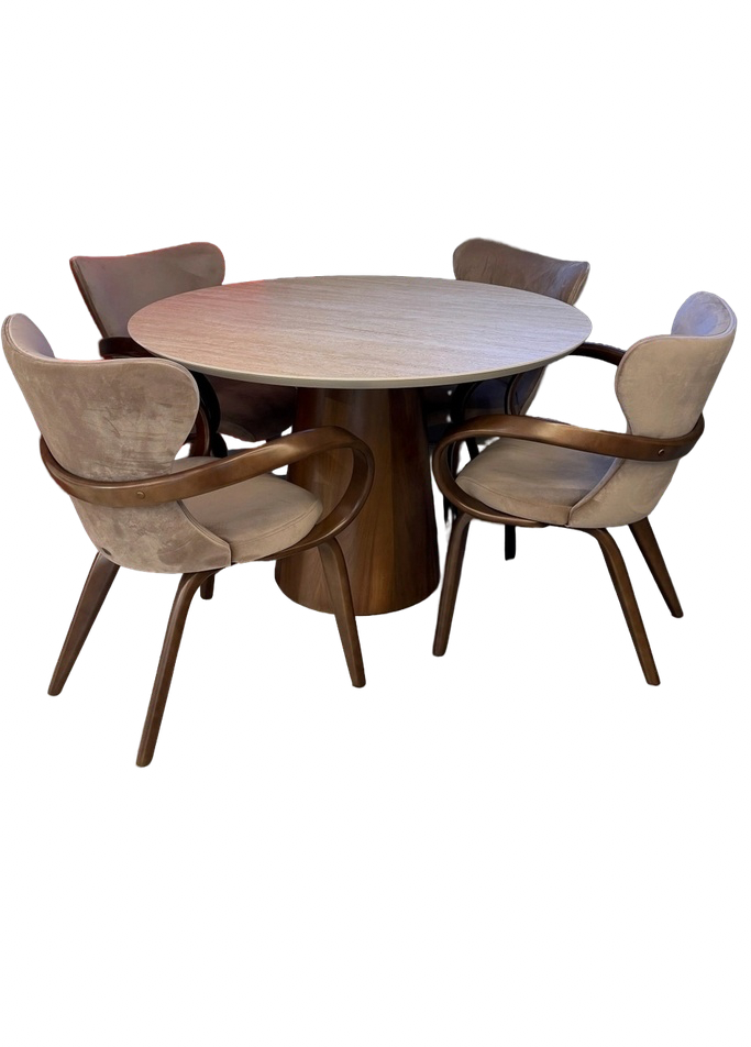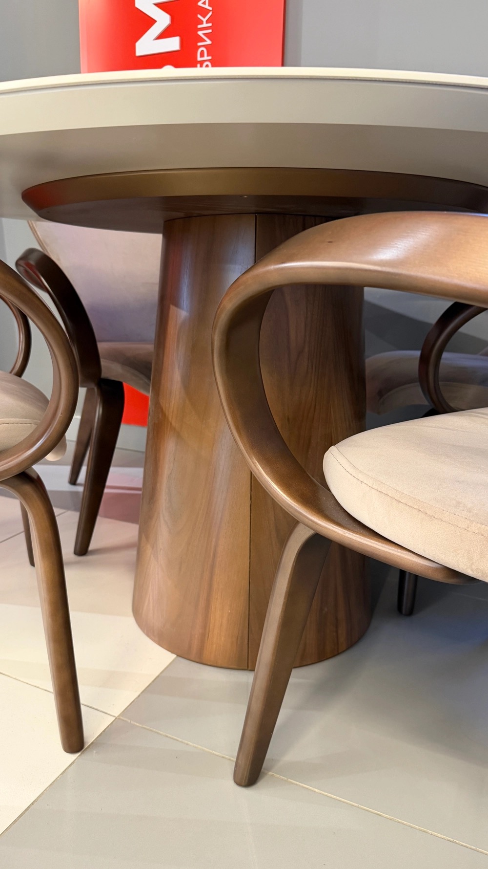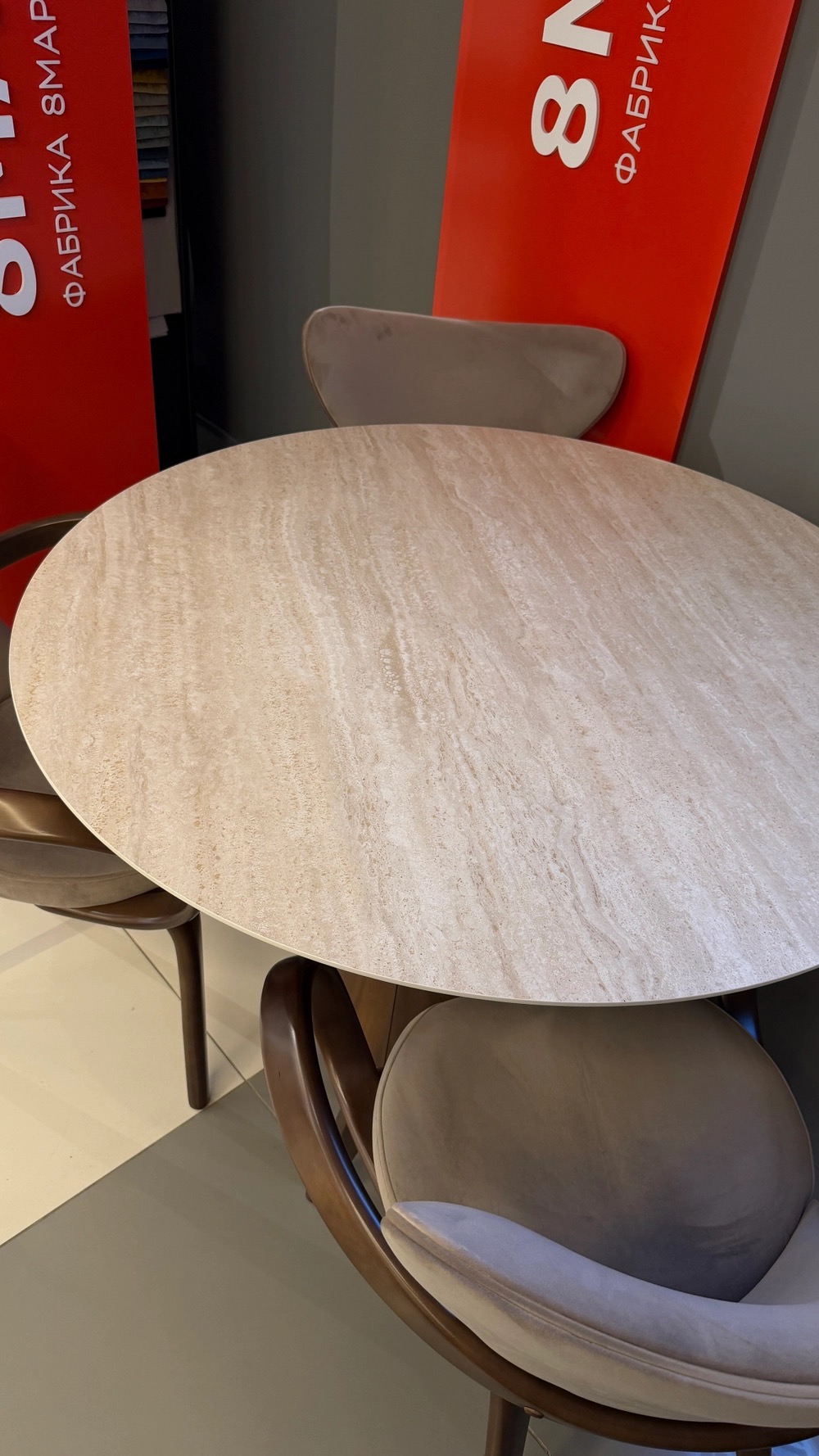 Столешница выполнена в керамограните, что позволяет вам наслаждаться эксплуатацией в полной мере. Керамогранит травертин устойчив к царапинам, влаге и пятнам, а деревянная ножка придает теплоту и природное очарование. Это идеальное сочетание современного дизайна и надежности!